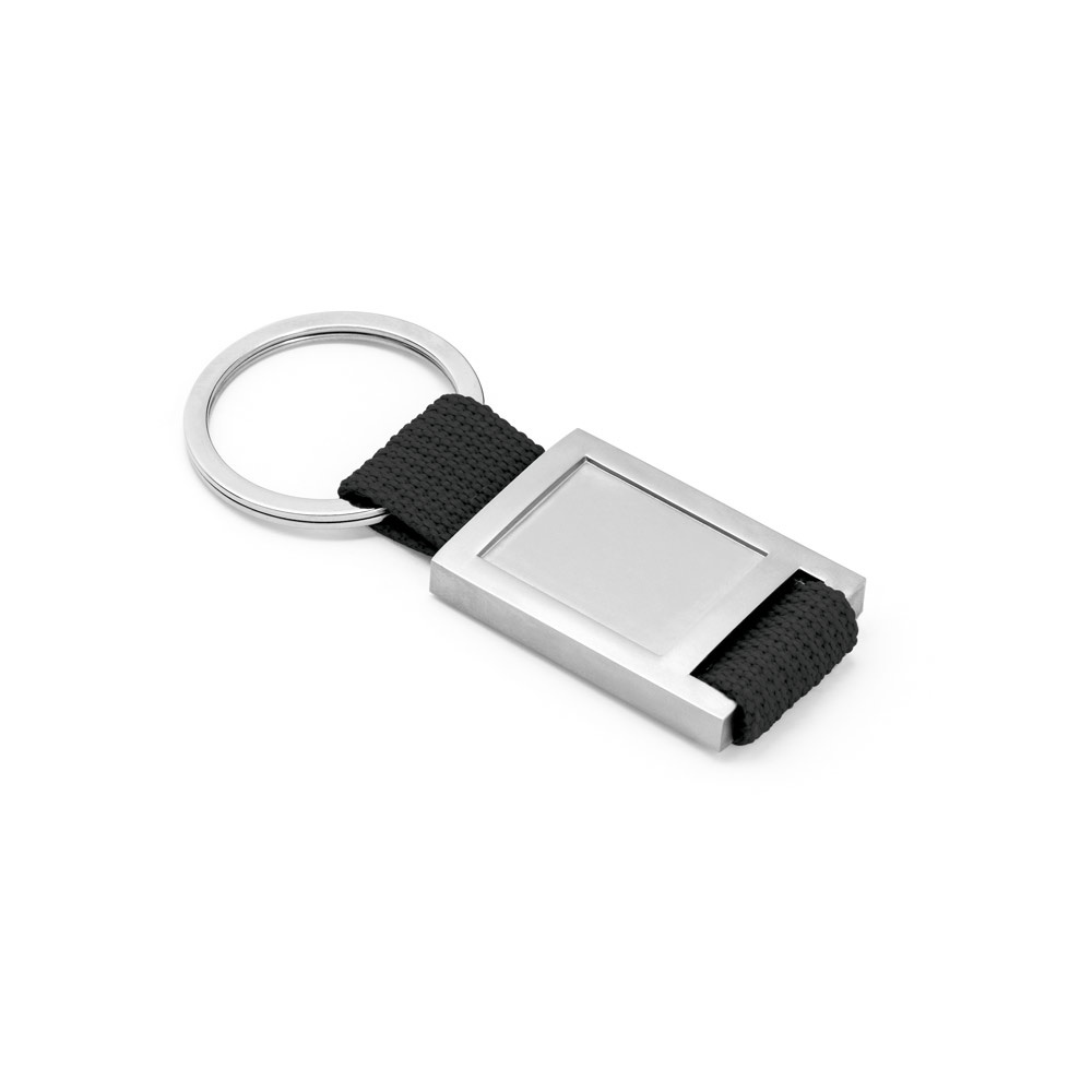 Llavero de metal y tela webbing con encaje para doming. Suministrado en caja de presentación.27 x 61 x 5 mm