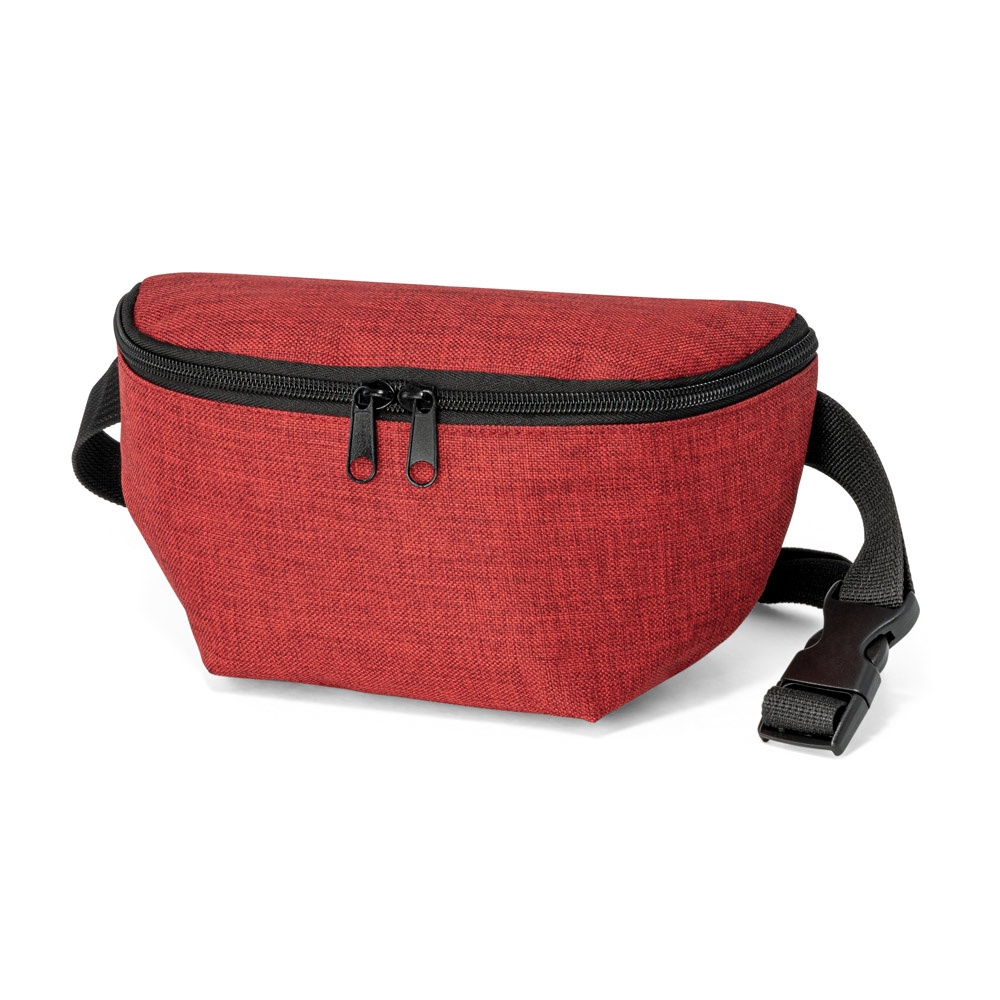 Riñonera fabricada en poliéster 600D de alta densidad con compartimento principal y cremallera frontal. Tiene correa ajustable con cierre.220 x 120 mm