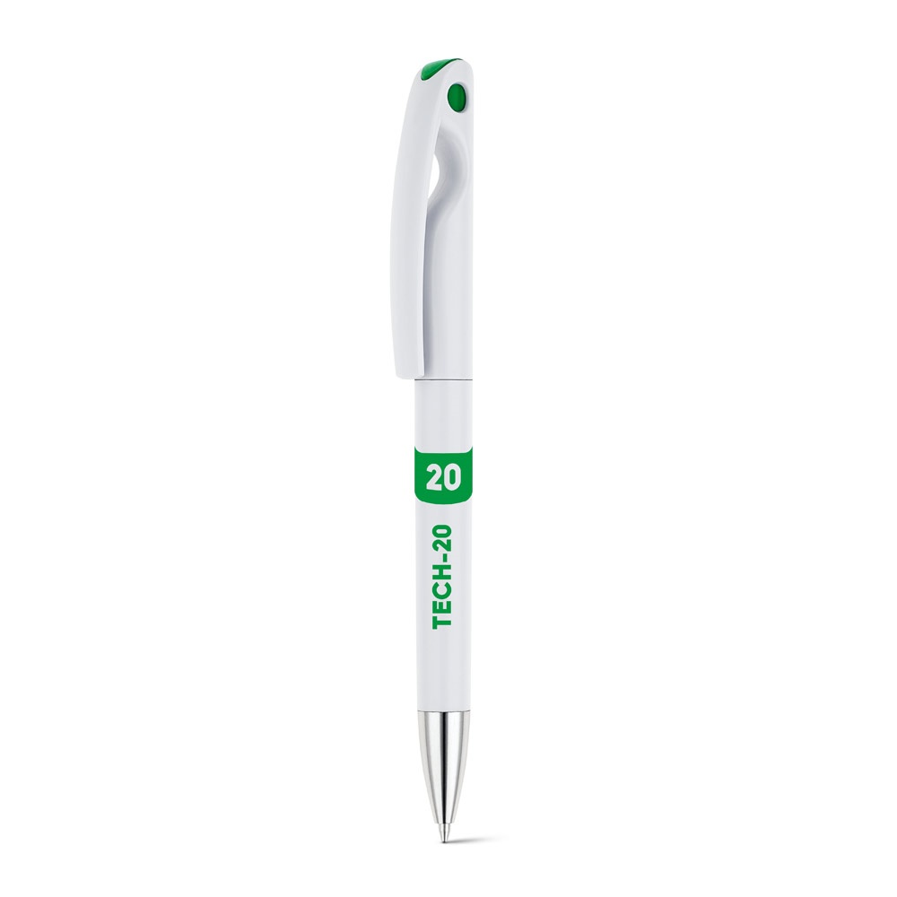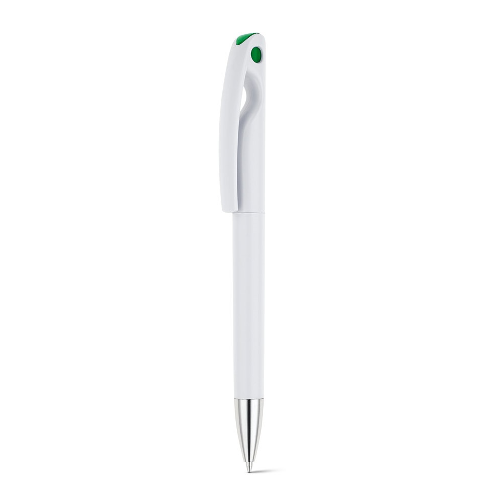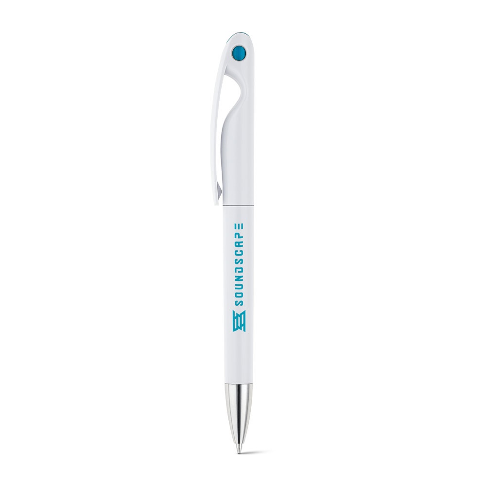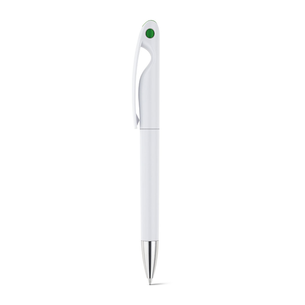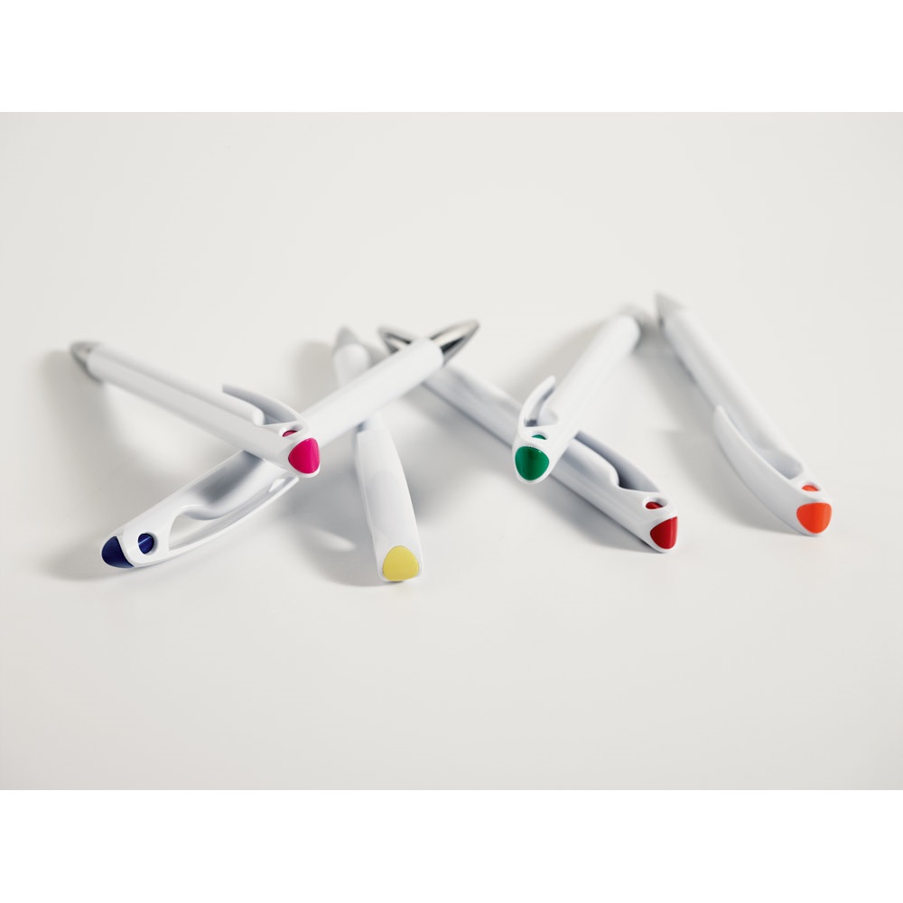 Elegante y original bolígrafo fabricado en ABS. Su detalle de color le da un aire atractivo y fresco. Escritura en color negro