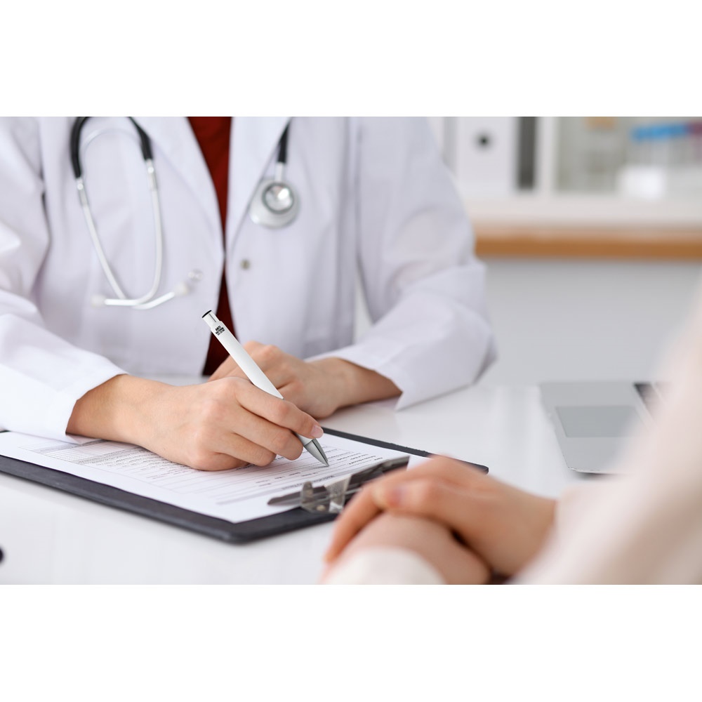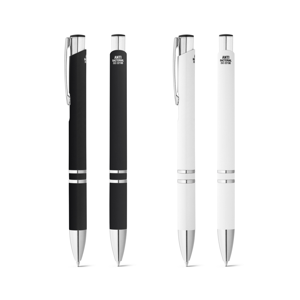 Bolígrafo con clip fabricado en ABS con tratamiento antibacteriano y tinta azul. Dispone de certificación ISO 022196