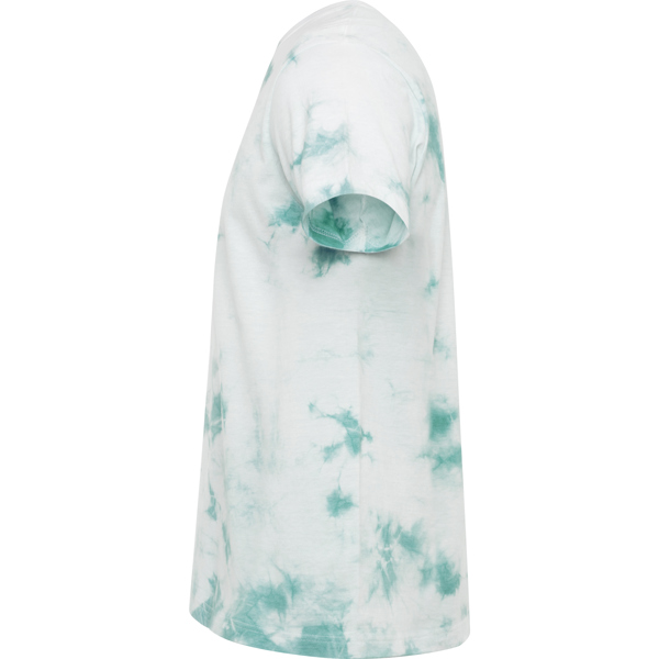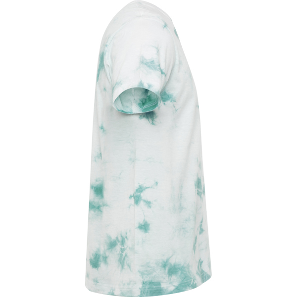 Camiseta tubular de manga corta unisex efecto Tie-Dye. Cuello redondo en canalé 1×1 con cubre costuras en cuello. El acabado y la tonalidad de esta prenda puede variar dentro de un mismo tono.