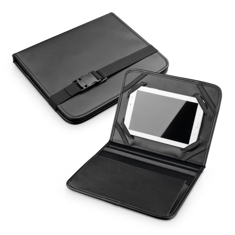 Ref.: 50-72280-103Organizador de coche en polipiel con soporte para tablet de hasta 10.5» y banda elástica para colgar en el asiento