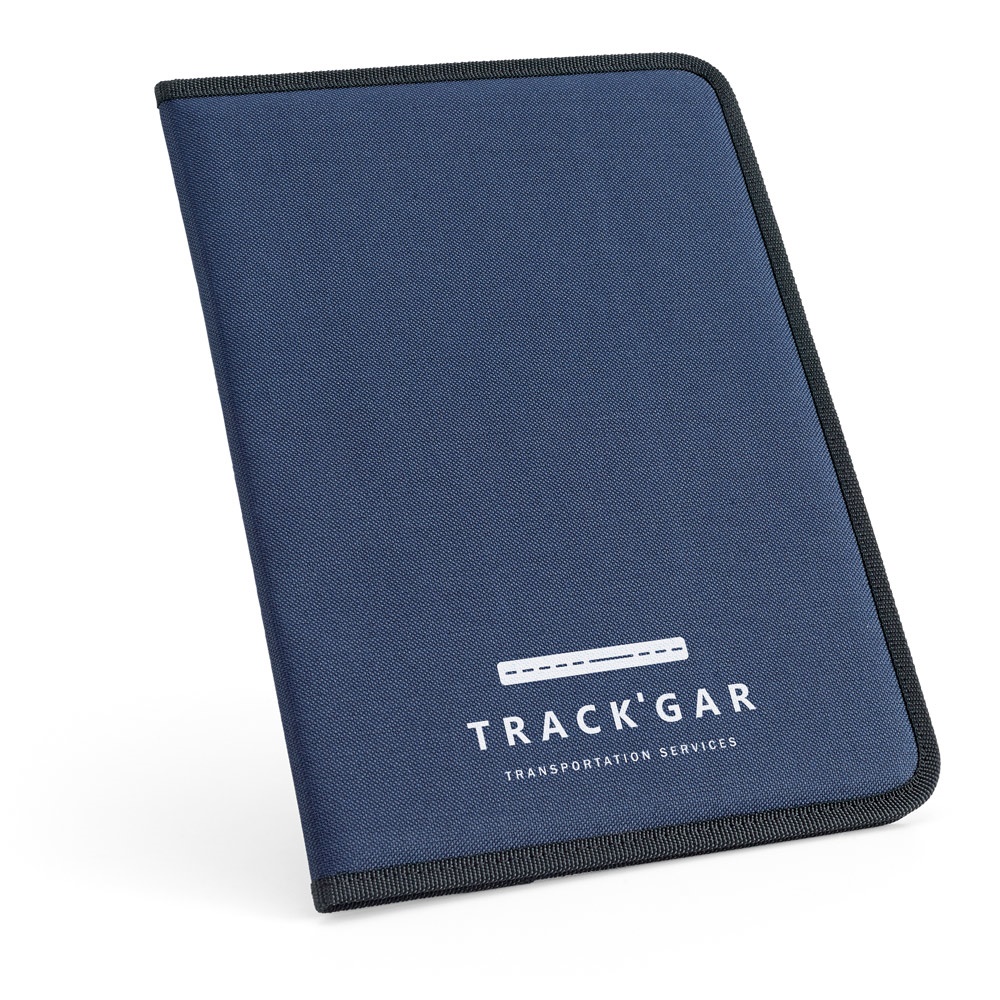 Carpeta A4 hecha en 600D con 20 hojas rayadas, bolsillo interior y soporte para bolígrafos (no incluido)