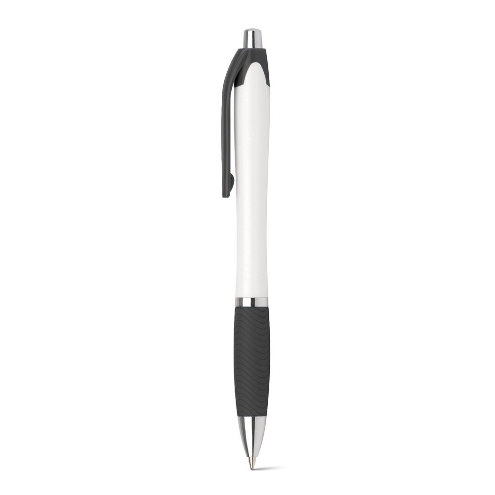 Bolígrafo con detalles plateados. Clip y antideslizante disponibles en varios colores