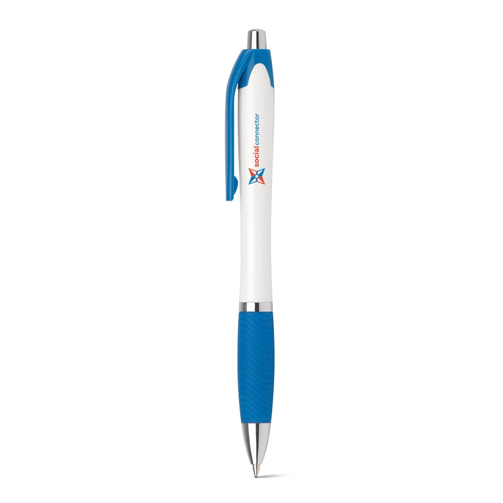 Bolígrafo con detalles plateados. Clip y antideslizante disponibles en varios colores.ø12 x 142 mm