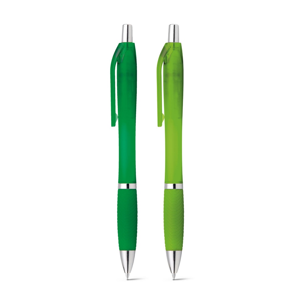 Bolígrafo de plástico con sujeción de goma y recarga de tinta azul