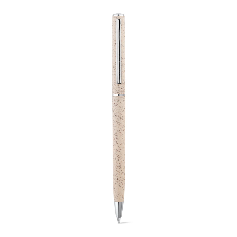 Bolígrafo en fibra de paja de trigo y ABS con mecanismo de giro y clip metálico.ø8 x 126 mm