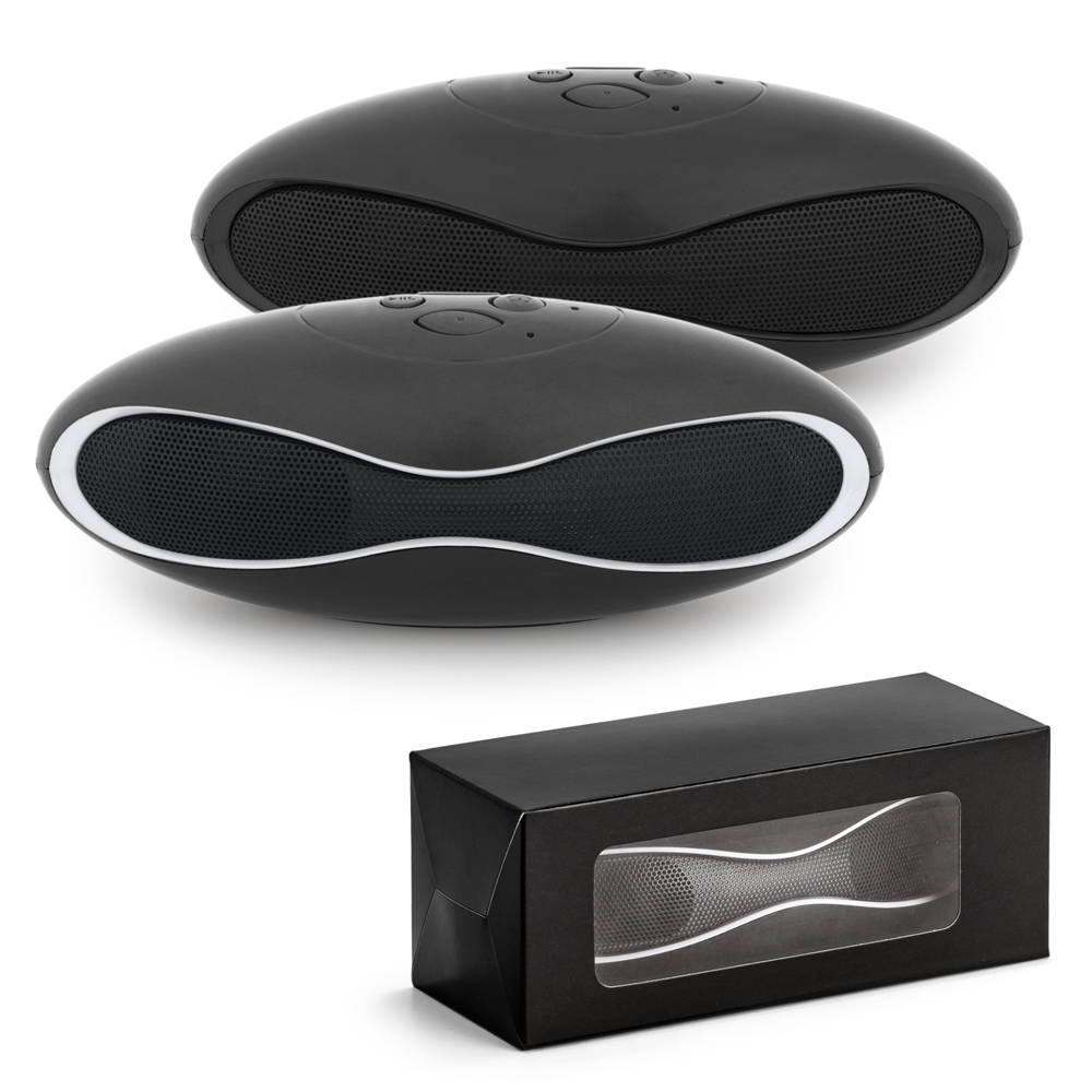 Altavoz con micrófono hecho en ABS, con acabado en goma. El altavoz permite la transmisión por bluetooth, tiene una potencia de 3W/4Ω y una autonomía de hasta 3 h. Permite contestar llamadas, controlar el volumen y conectarse a la lista de reproducción de su dispositivo móvil. Incluye cable USB. Suministrado en una caja de regalo
