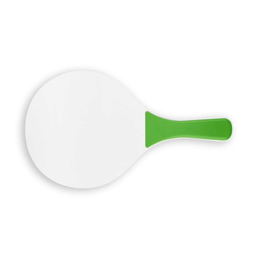 Raquetas de playa fabricadas en MDF con pelota incluida. Tienen un detalle de color en el mango de la raqueta, a juego con la pelota. ø190 x 330 x 5 mm