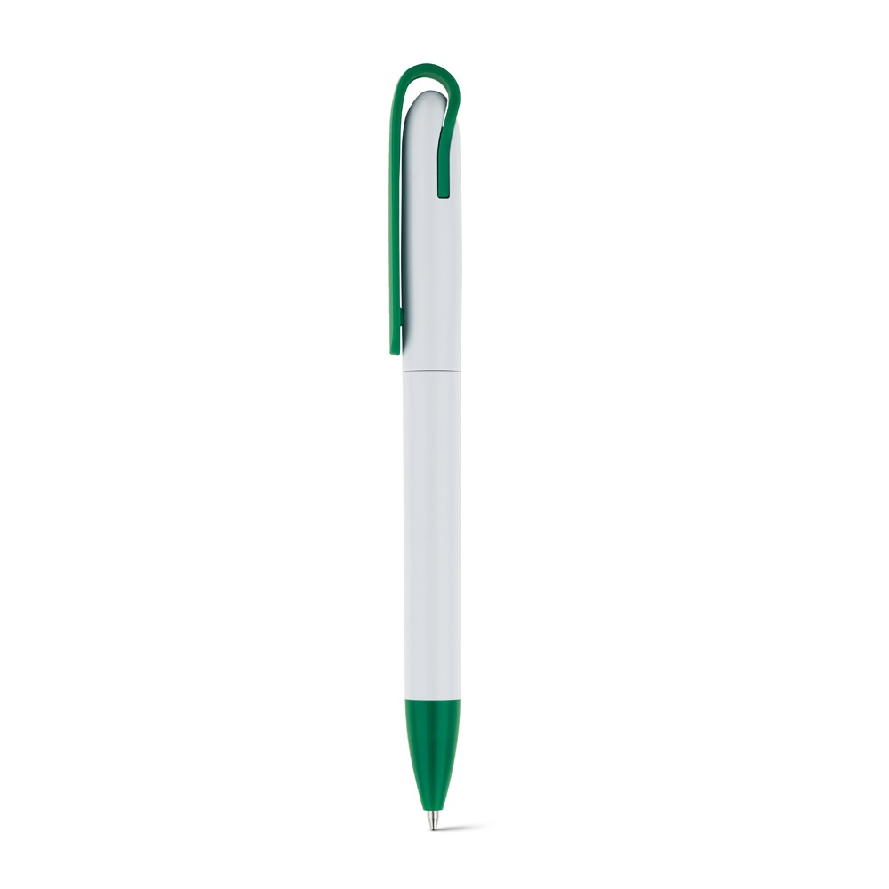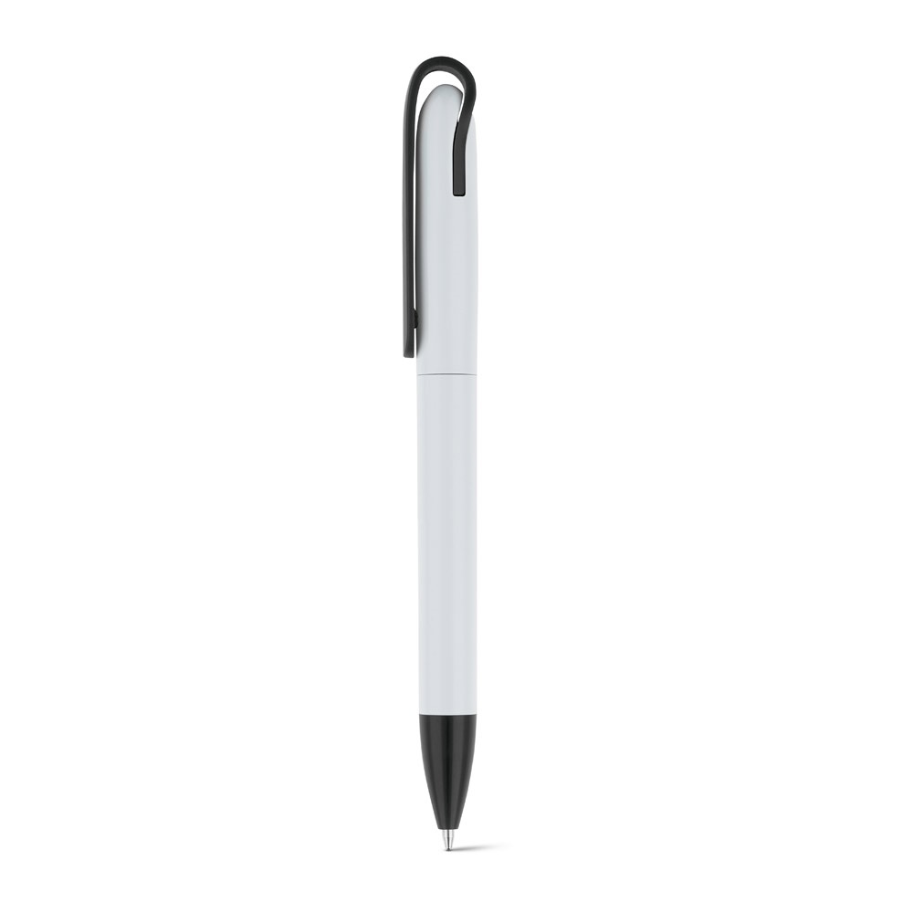 Bolígrafo fabricado en ABS con original clip con acabado ergonómico a juego con la puntera. Clip ancho que permite una mejor visualización del logo. Escritura azul.ø11 x 141 mm