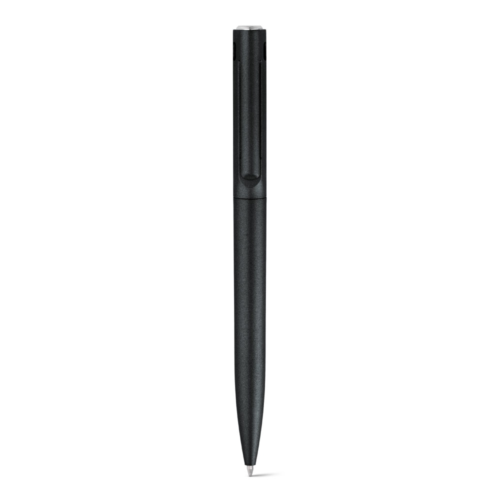 Elegante bolígrafo con mecanismo de giro. Escritura azul.ø11 x 145 mm