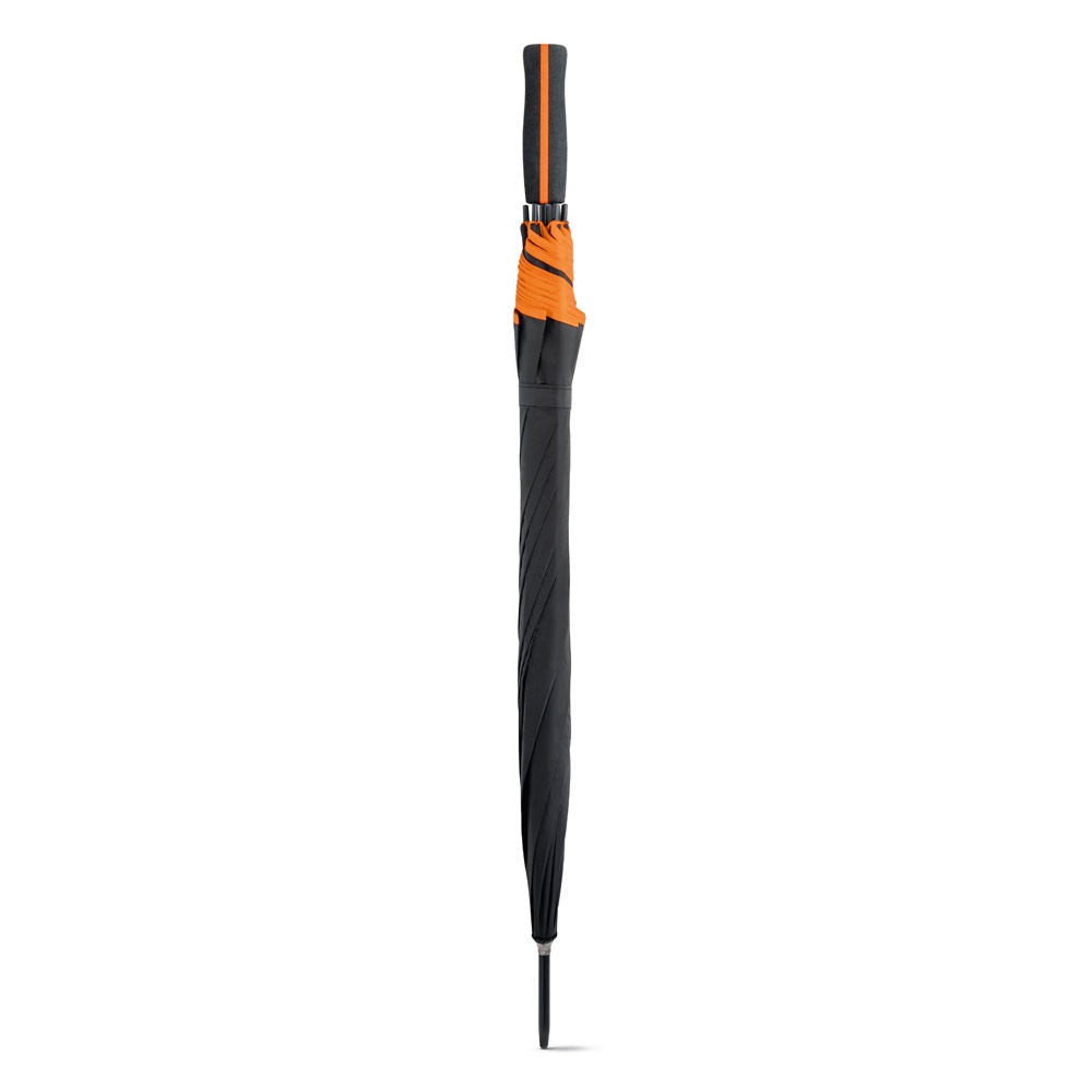 Paraguas de poliéster 190T con mango de EVA y mecanismo de apertura automática. Detalle de color a contraste en el paraguas y en el mango. ø1040 mm x 825 mm