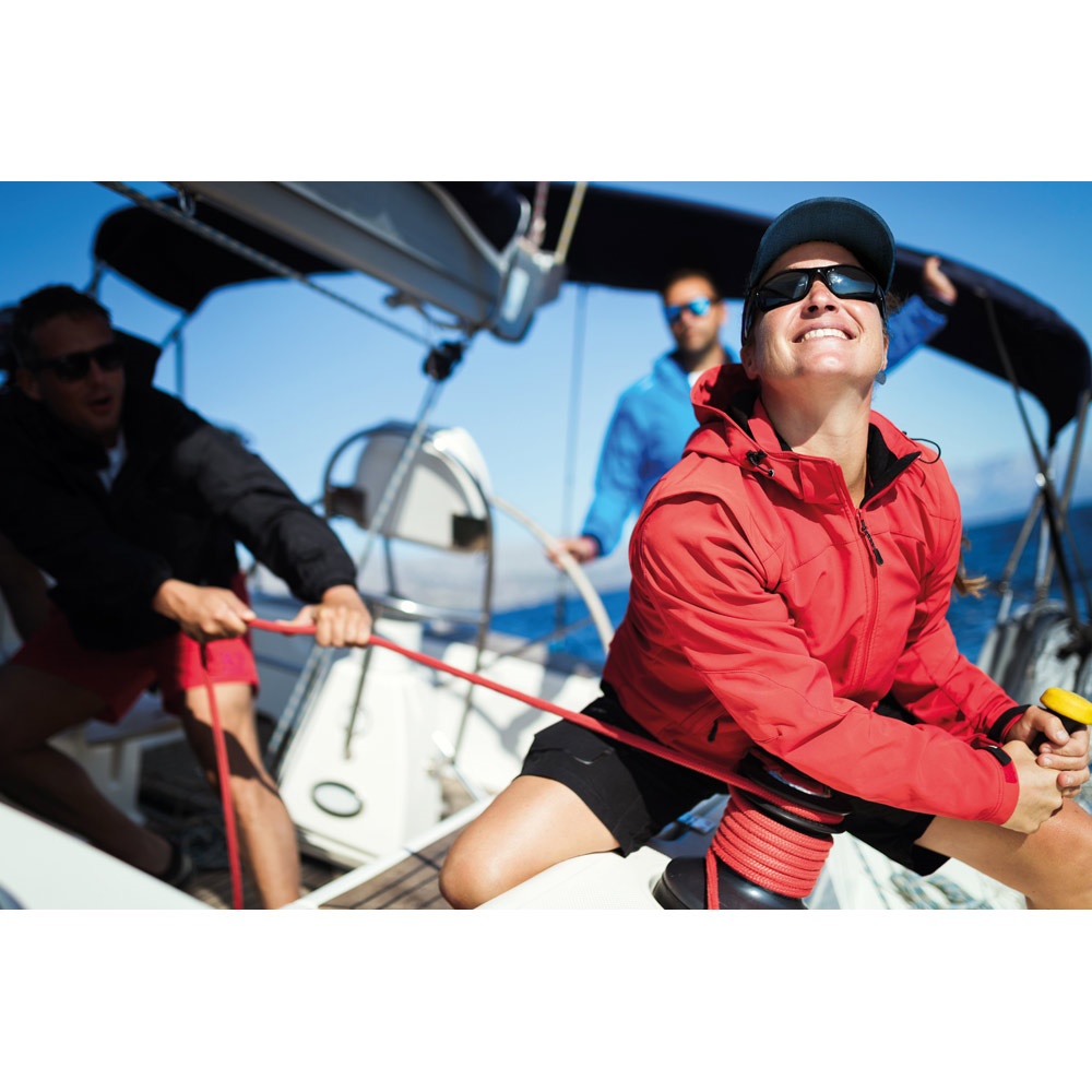Gorra de poliéster con elementos reflectantes, orificios de ventilación y cierre de velcro ajustable. Producto promocional