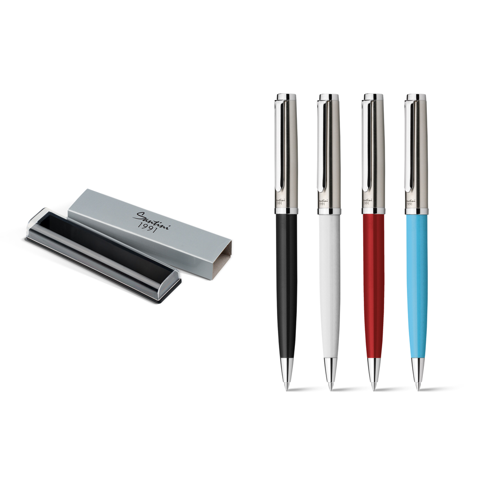 Ref.: 50-12594-106Bolígrafo metálico con tinta azul, suministrado en una caja de regalo de plástico transparente