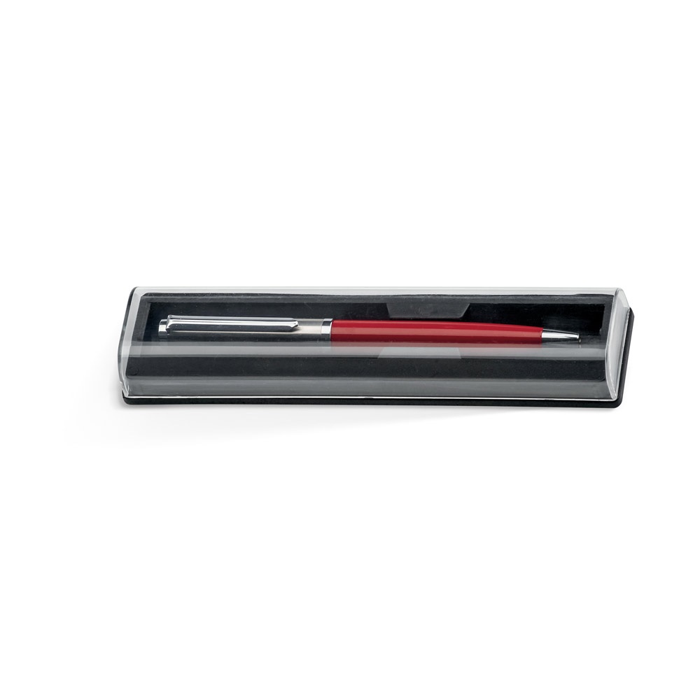Bolígrafo metálico con tinta azul, suministrado en una caja de regalo de plástico transparente. ø11 x 136 mm | Caja: 161 x 20 x 36 mm