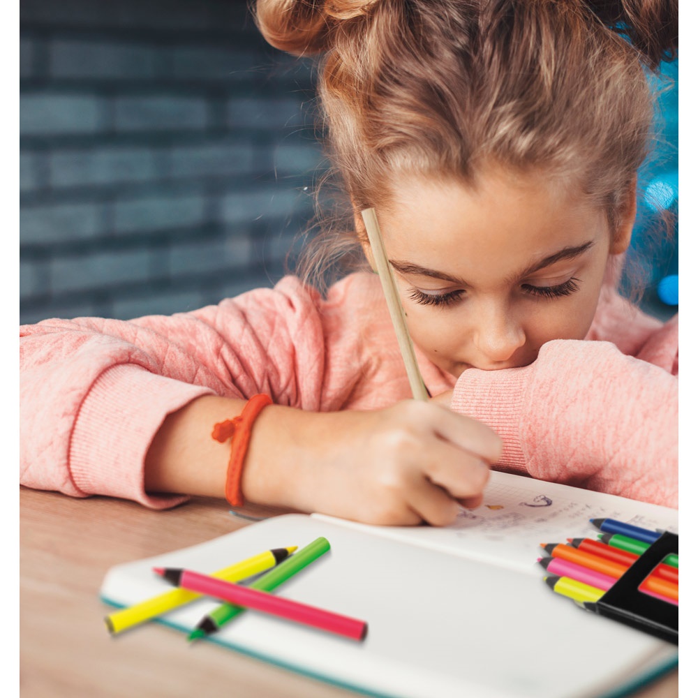 Caja con 6 pequeños lápices fluorescentes de madera para colorear