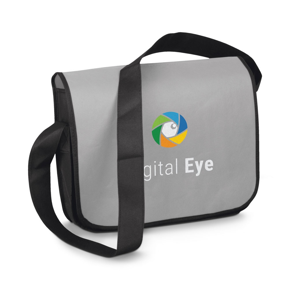 Bolso de tela no tejida (non woven). Parte superior 135 g/m², resto 100 g/m². 355 x 300 x 80 mm