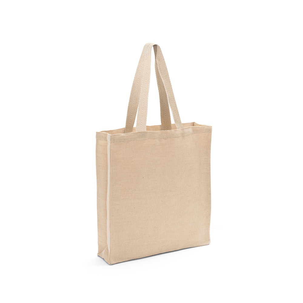 Bolsa Juco (275 g / m) con bolsillo interior 100% algodón (120 g / m) con cremallera. Asas de tejido de algodón bicolor.370 x 410 x 90 mm