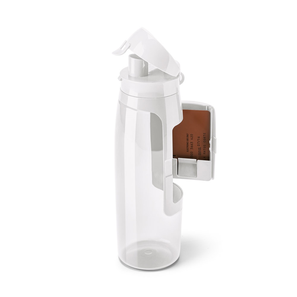 Ref.: 50-54620-106Botella deportiva en Tritan™ de fácil apertura y con compartimento para tarjetas, con una capacidad de hasta 800 ml. Suministrado en caja
