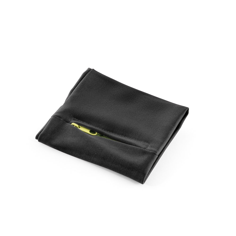 Muñequera elástica de poliéster con bolsillo de cierre de cremallera, ideal para guardar objetos pequeños y usar durante la práctica de deportes
