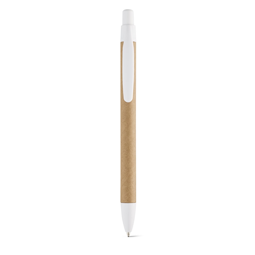 Carpeta de cartón A4 (450 g/m²) que incluye un bloc de 20 hojas lisas de papel reciclado, tarjetero y bolígrafo con tinta azul
