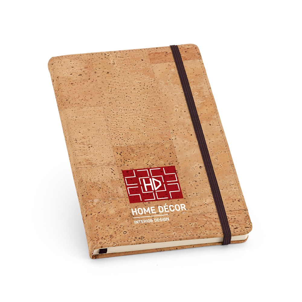 Bloc de notas con tapa de corcho y 160 páginas lisas de color marfil. Se suministra en una funda de non-woven
