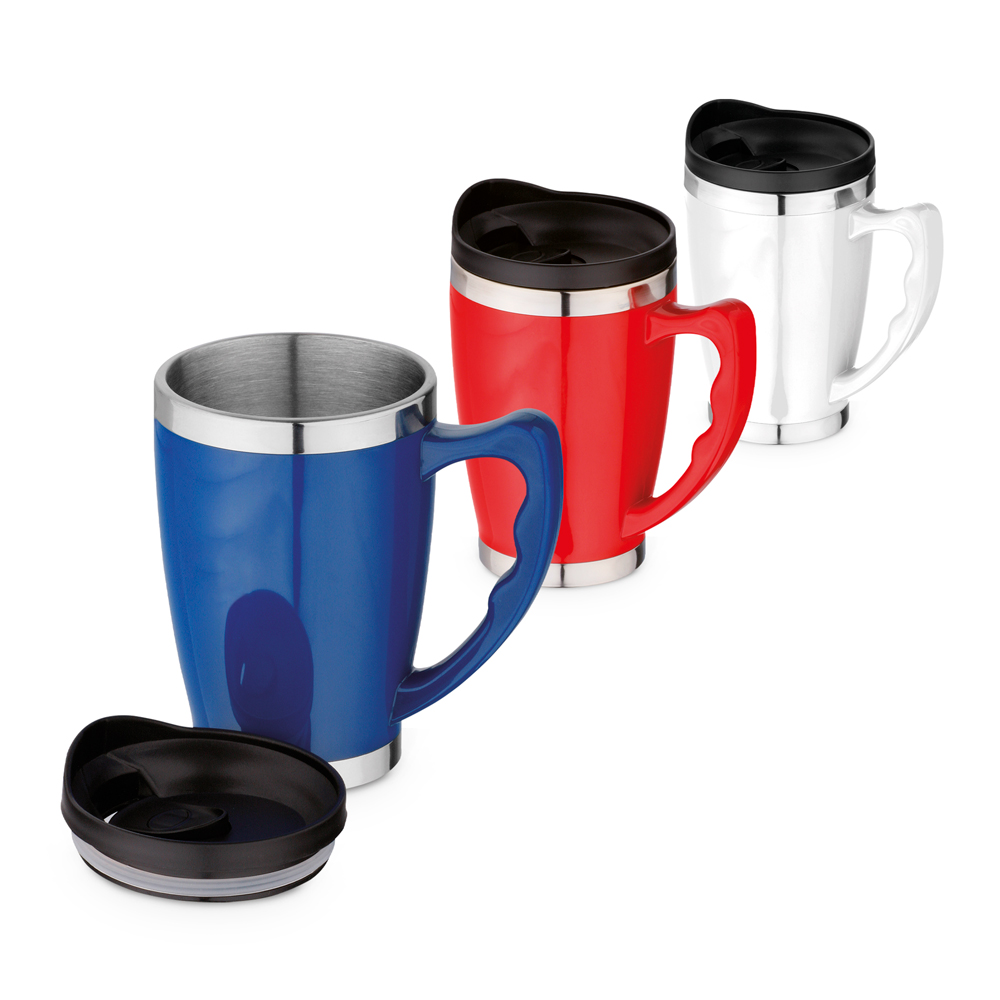Taza de viaje con doble pared, en acero inoxidable. Capacidad hasta 450 ml. Suministrado en caja