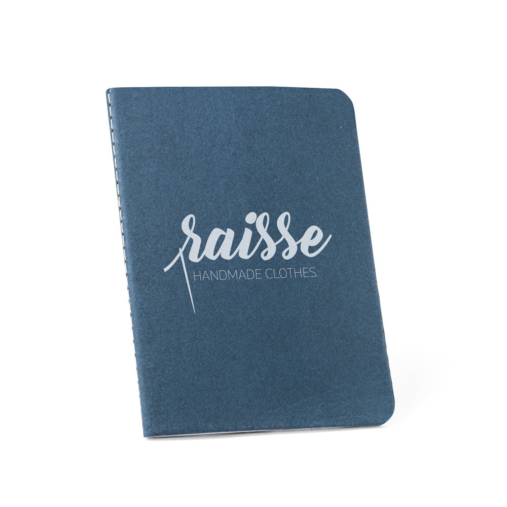 Bloc de notas B7 con 60 páginas pautadas de papel reciclado y tapa de cartón.93 x 125 mm
