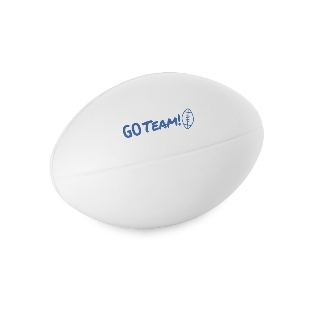 Pelota de rugby antiestrés hecha en PU.91 x 58 x 58 mm