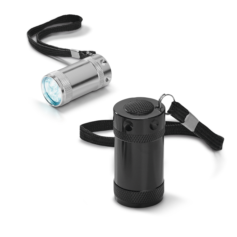 Linterna de aluminio con 6 leds y asa. Incluye 2 pilas CR2032.ø25 x 49 mm