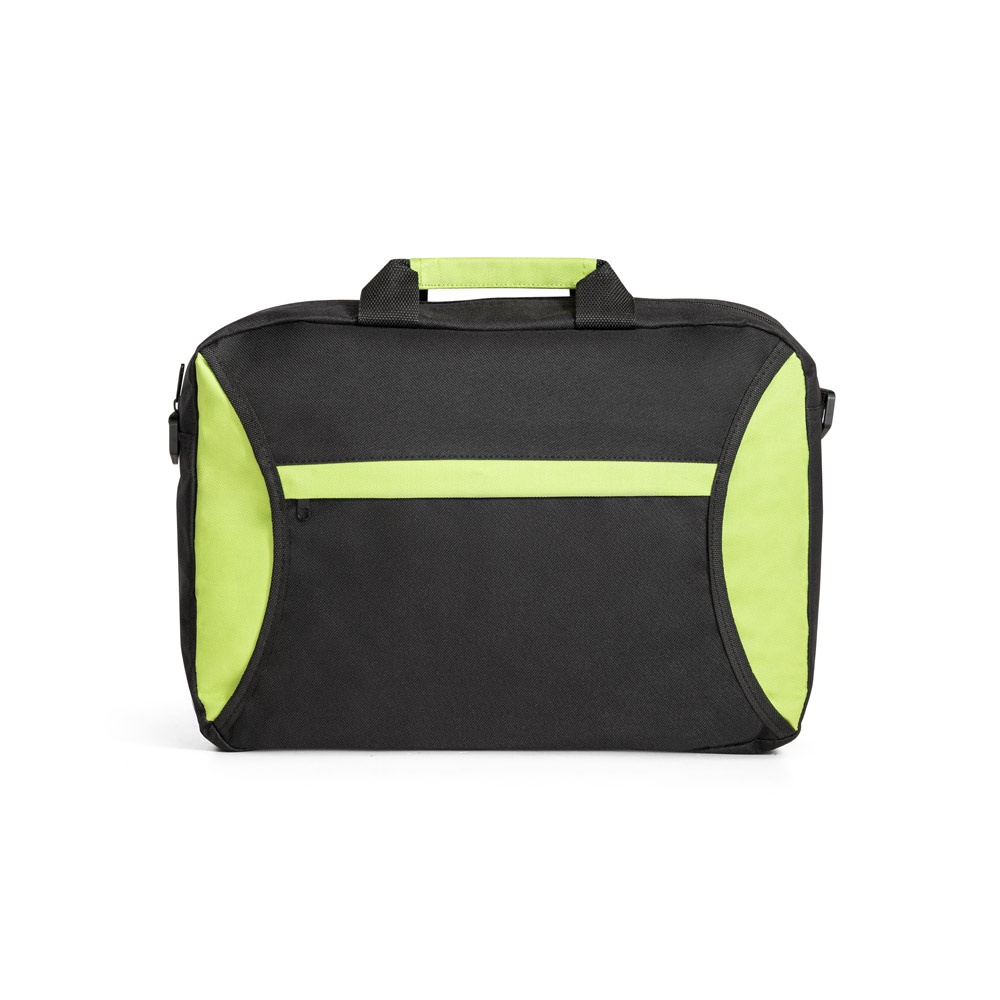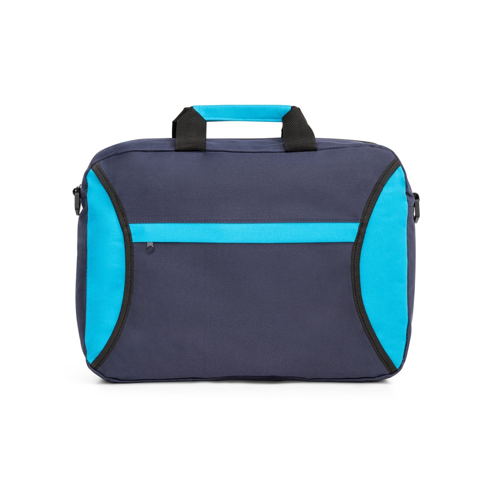 Maletín multiusos fabricado en poliéster 600D. Dispone de asas, una correa ajustable y un compartimento exterior abierto (forrado) con bolsillo frontal con cremallera