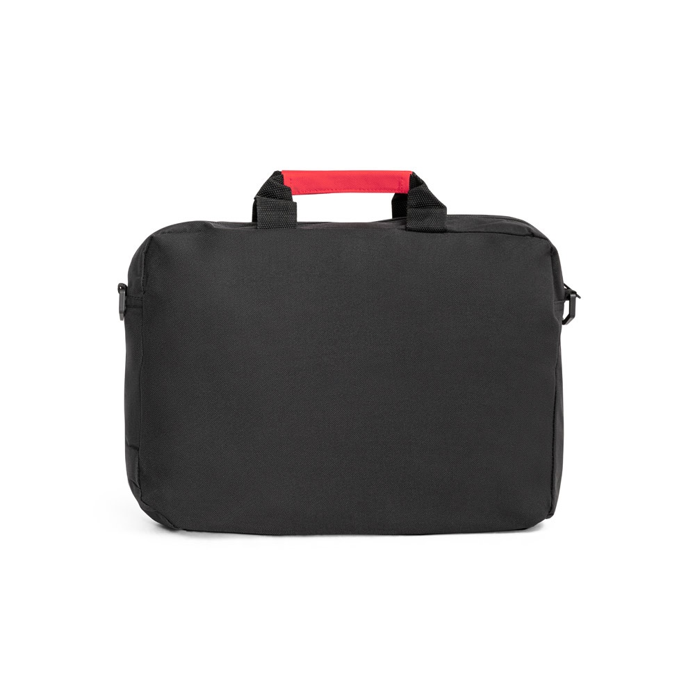 Maletín multiusos fabricado en poliéster 600D. Dispone de asas, una correa ajustable y un compartimento exterior abierto (forrado) con bolsillo frontal con cremallera.400 x 300 x 100 mm