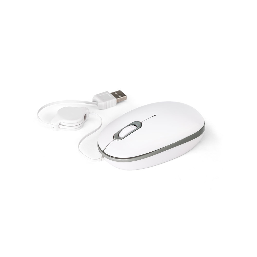 Ratón óptico con cable retráctil de 0.70 m y conexión USB.60 x 103 x 34 mm
