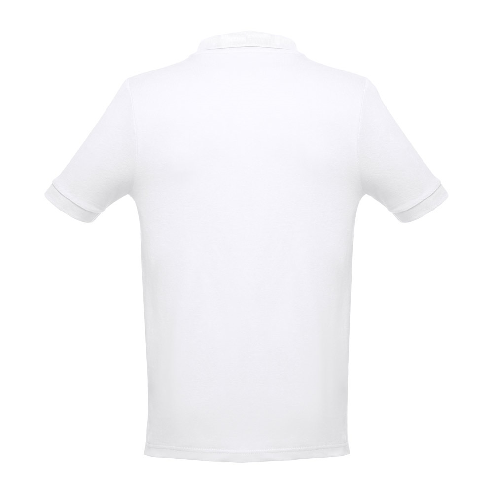 Polo unisex de manga corta en piqué de algodón 100% (195 g/m²). Con corte regular (regular fit), este polo tiene el cuello y las mangas de canaléy el cuello está reforzado con cinta de piqué. En la parte delantera, junto al cuello, lleva tres botones a juego con el color del polo (botón de repuesto insertado en la costura interior). Pieza cortada y cosida con pequeñas aberturas laterales en la parte inferior del polo