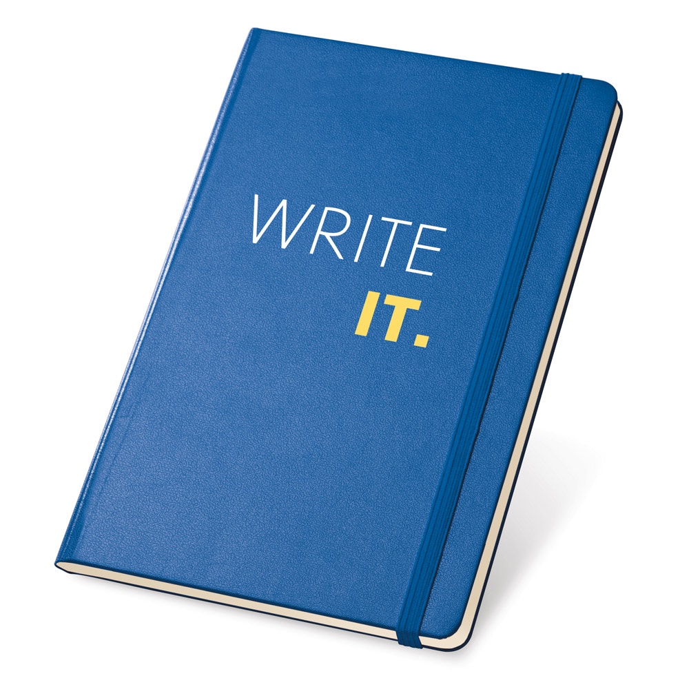 Bloc de notas A5 con 160 páginas en color marfil y tapa dura. Incluye bolsillo interior, cinta separadora y cierre elástico.137 x 210 mm