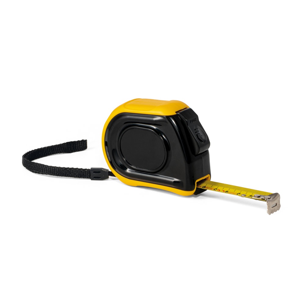 Cinta métrica de 5 m con freno en ABS, clip metálico y correa de sujeción de nylon. Dispone de certificación MID. 86 x 64 x 42 mm
