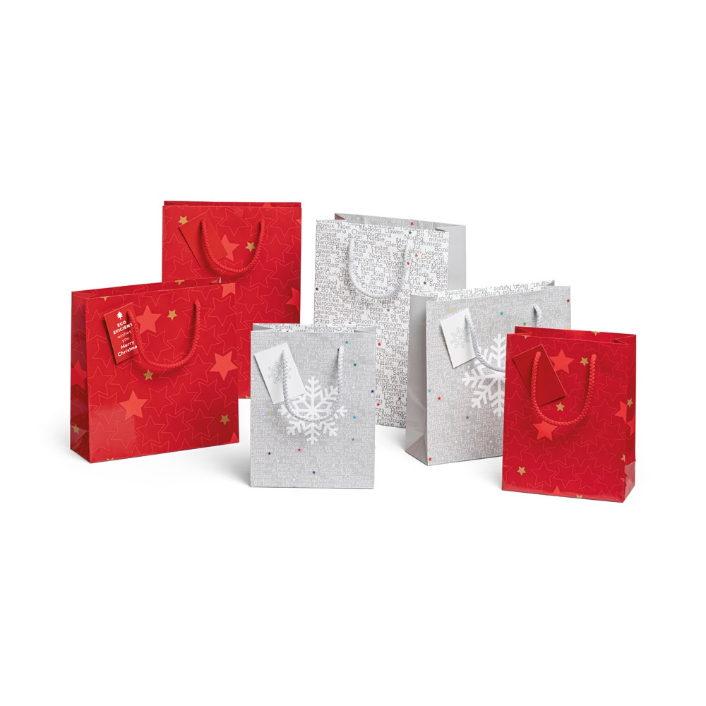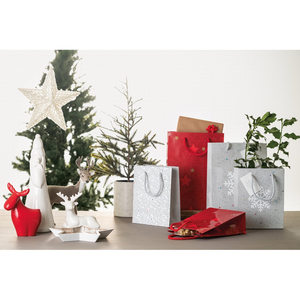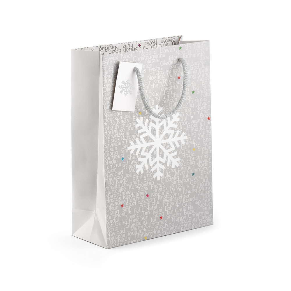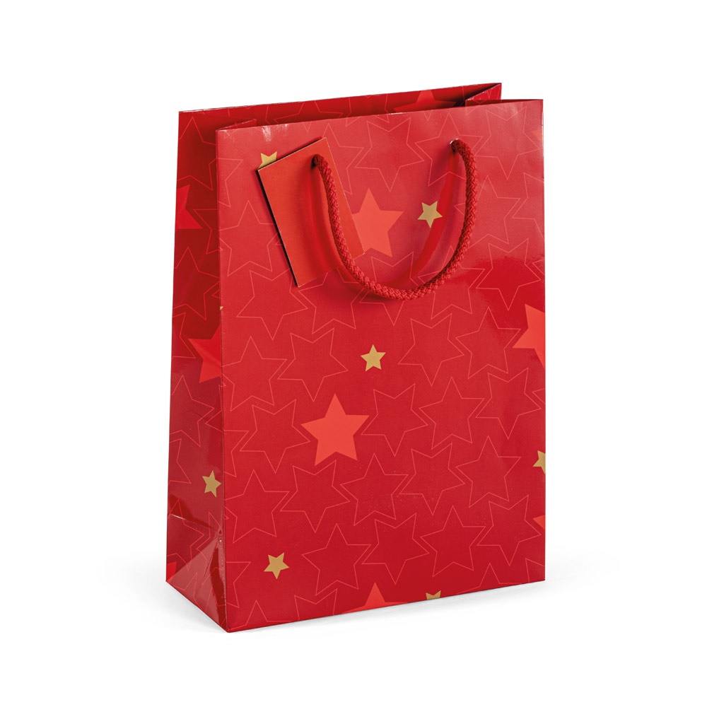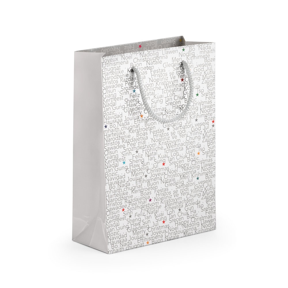 Bolsa media de papel estucado con laminado brillante (170 g / m²). Fabricada en cartón y cartulina para personalización